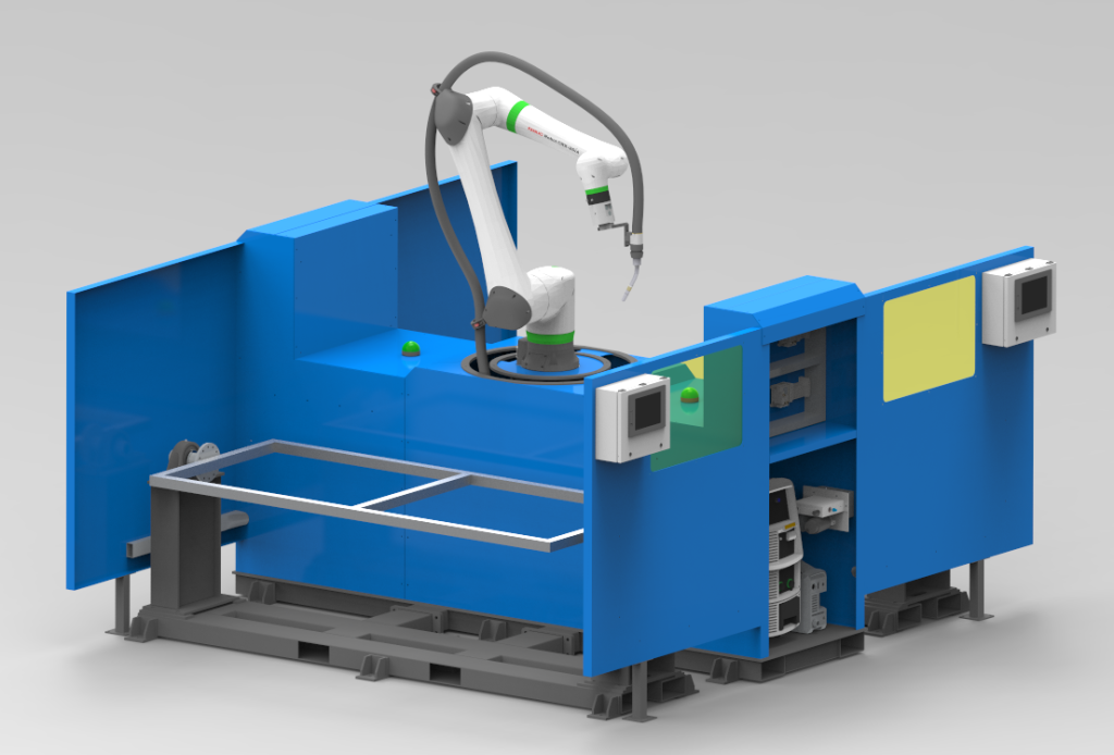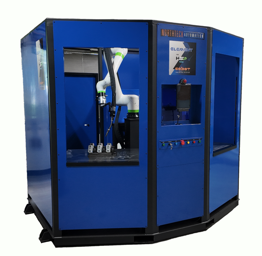 Fully enclosed HSP Cobot Welding solution, offering a compact foot print for maximum space efficiency.